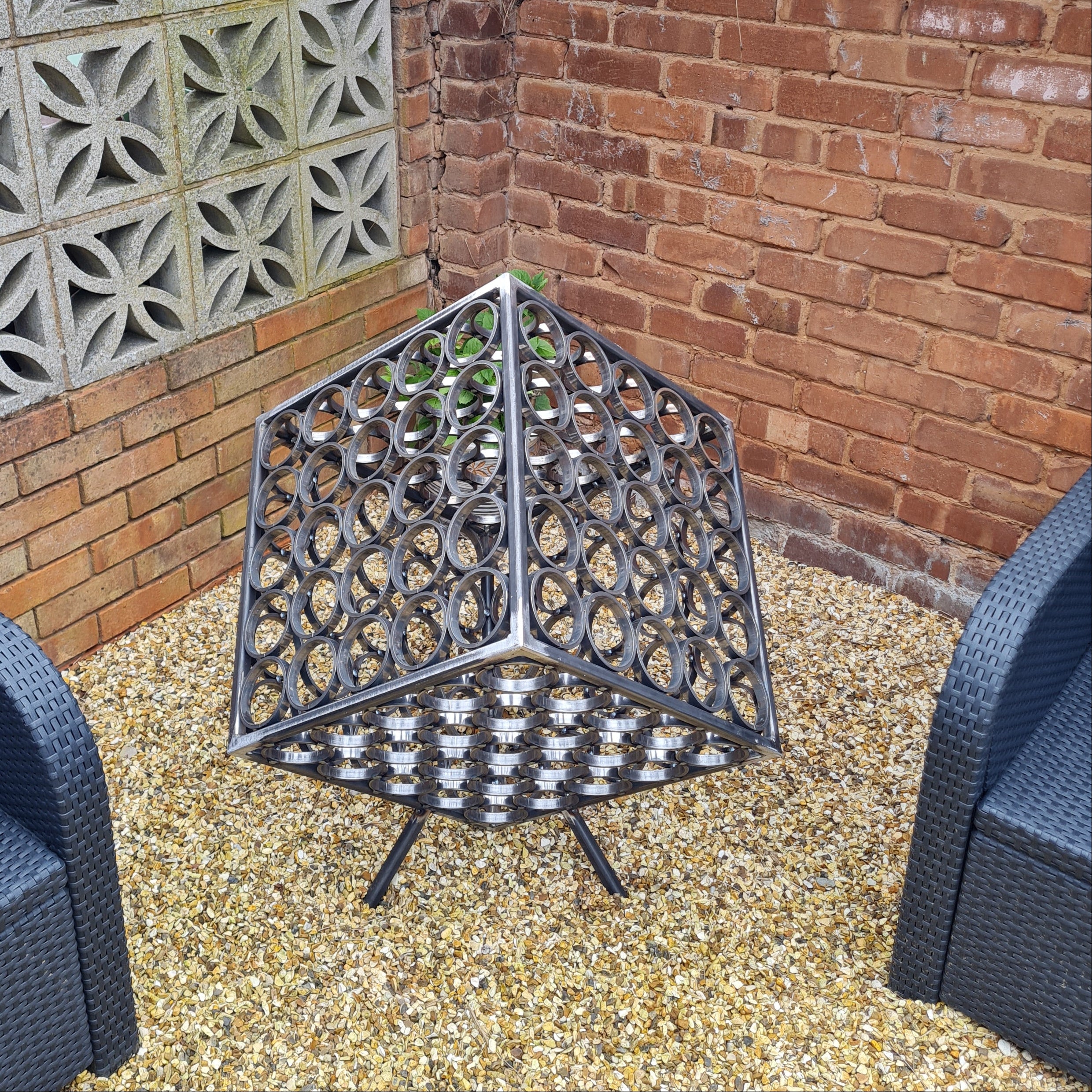 Rain catcher is absolutely gorgeous. I’ve put it in a plant pot at a slight angle overhanging my pond. When it rains, the water cascades and splashes into the pond, attracting the small garden birds